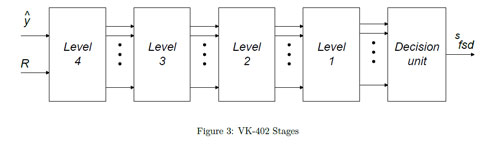 The VK-402 searches only within a fixed number of lattice points, where the number of considered lattice points decreases as we descend from level N. To achieve a close to ML BER performance, channel column ordering is required.